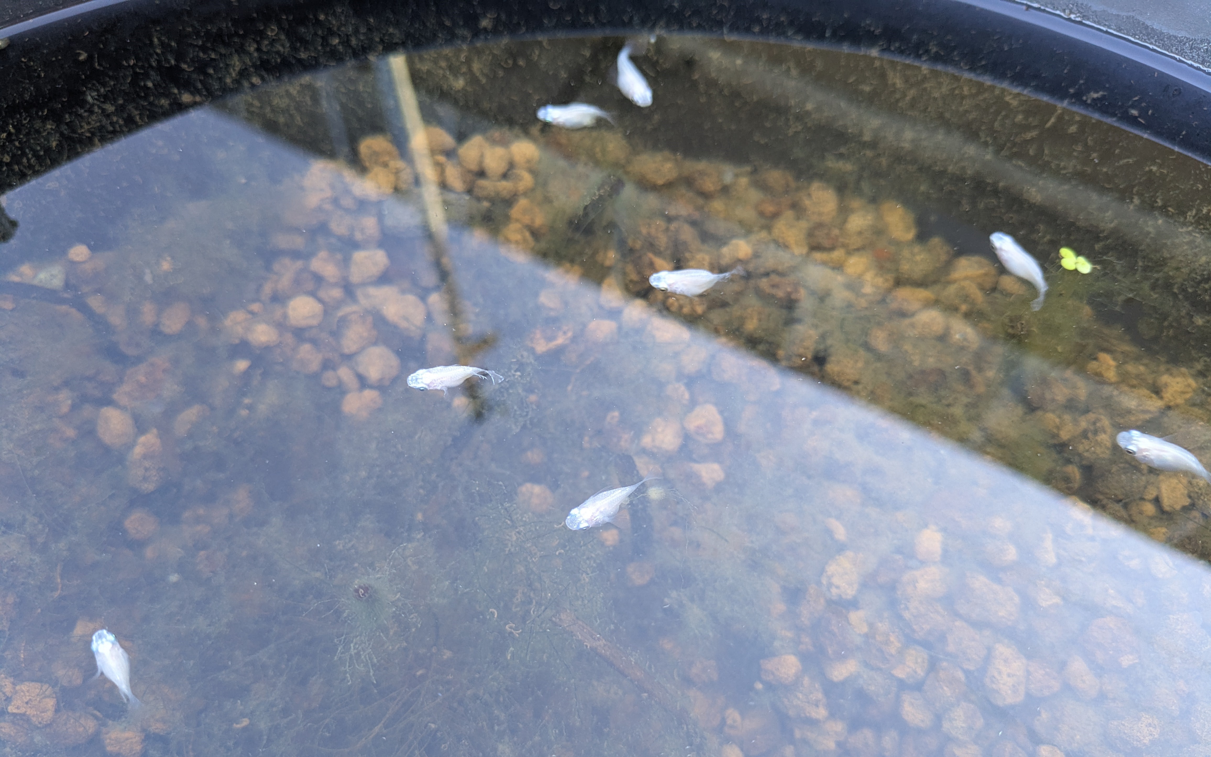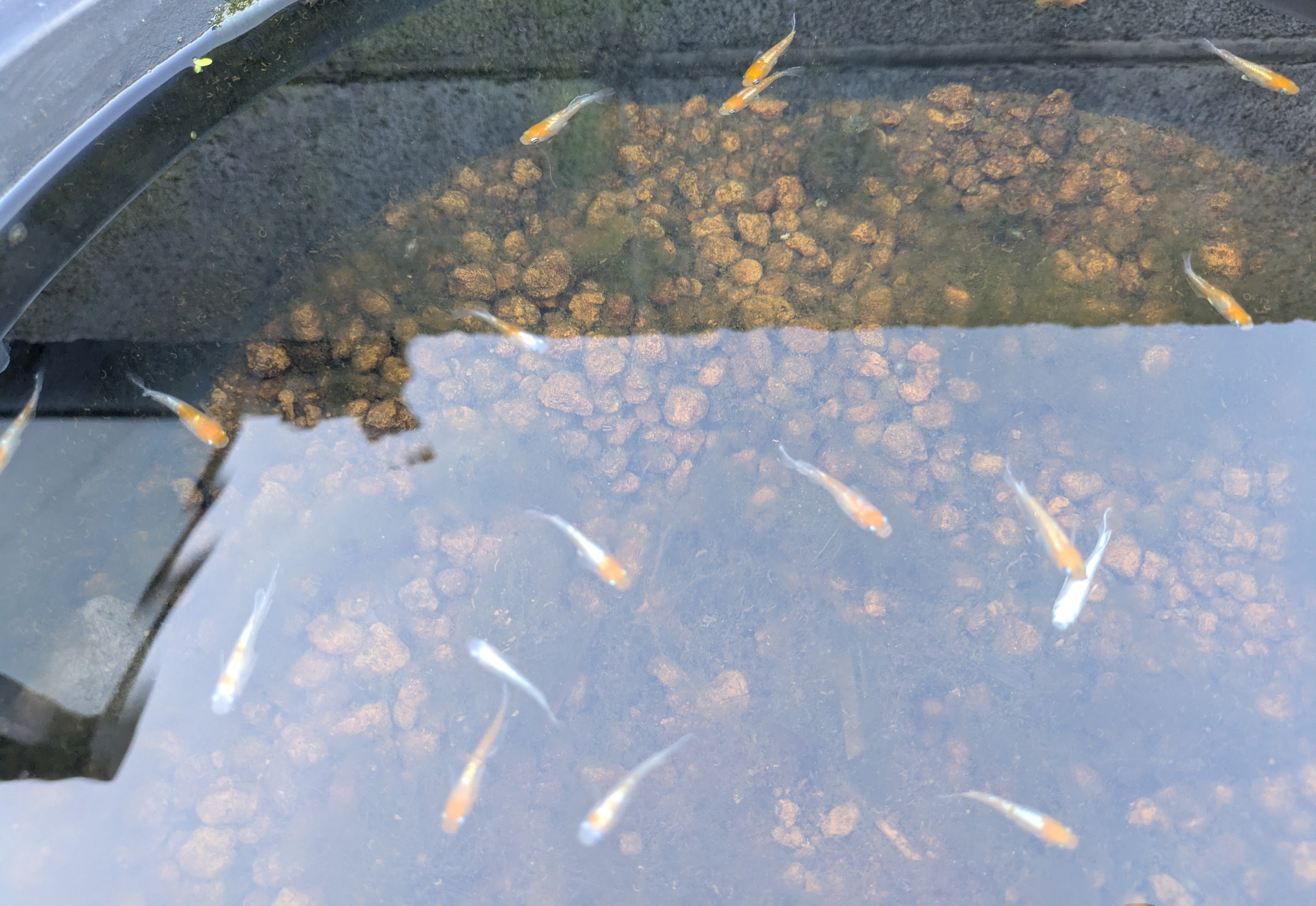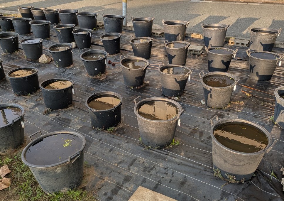 葉を刈り取ったら、メダカも泳ぎやすそうです。