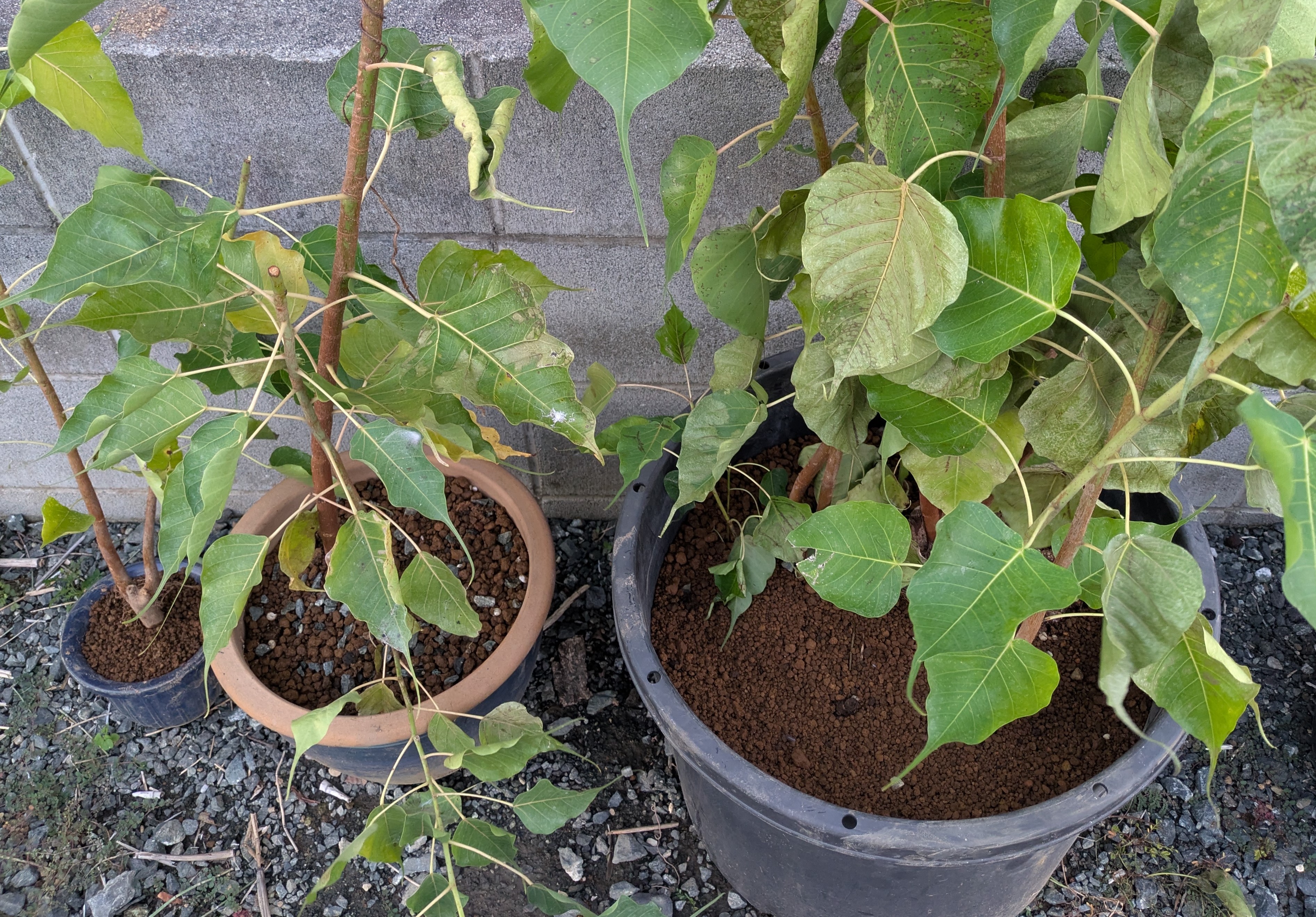 地植えになっていたインド菩提樹を根から保護して鉢に植え替えました。