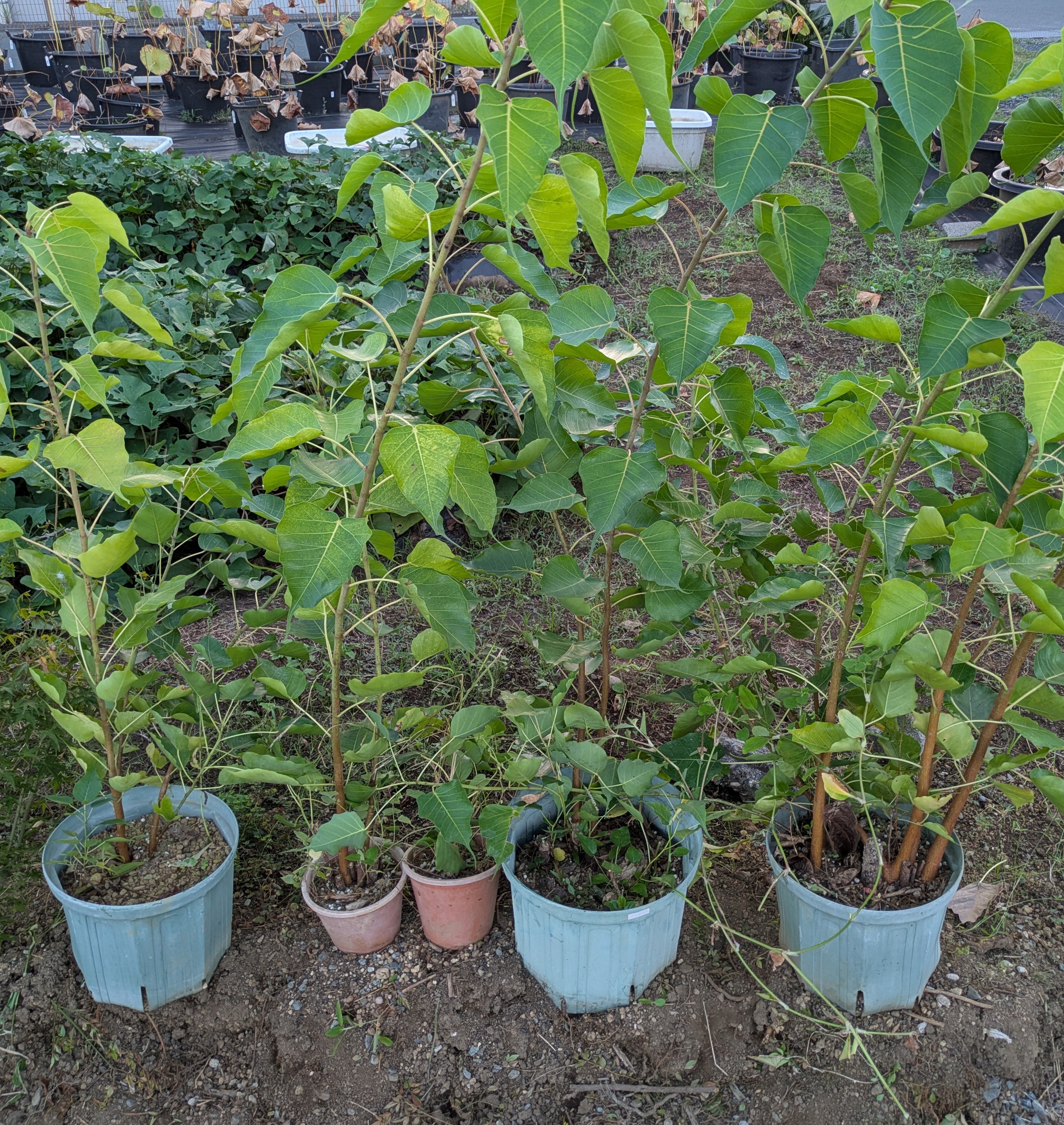 鉢植えにしていたインド菩提樹を動かそうとしたら、根が鉢の底からでて地植えになっておりました。