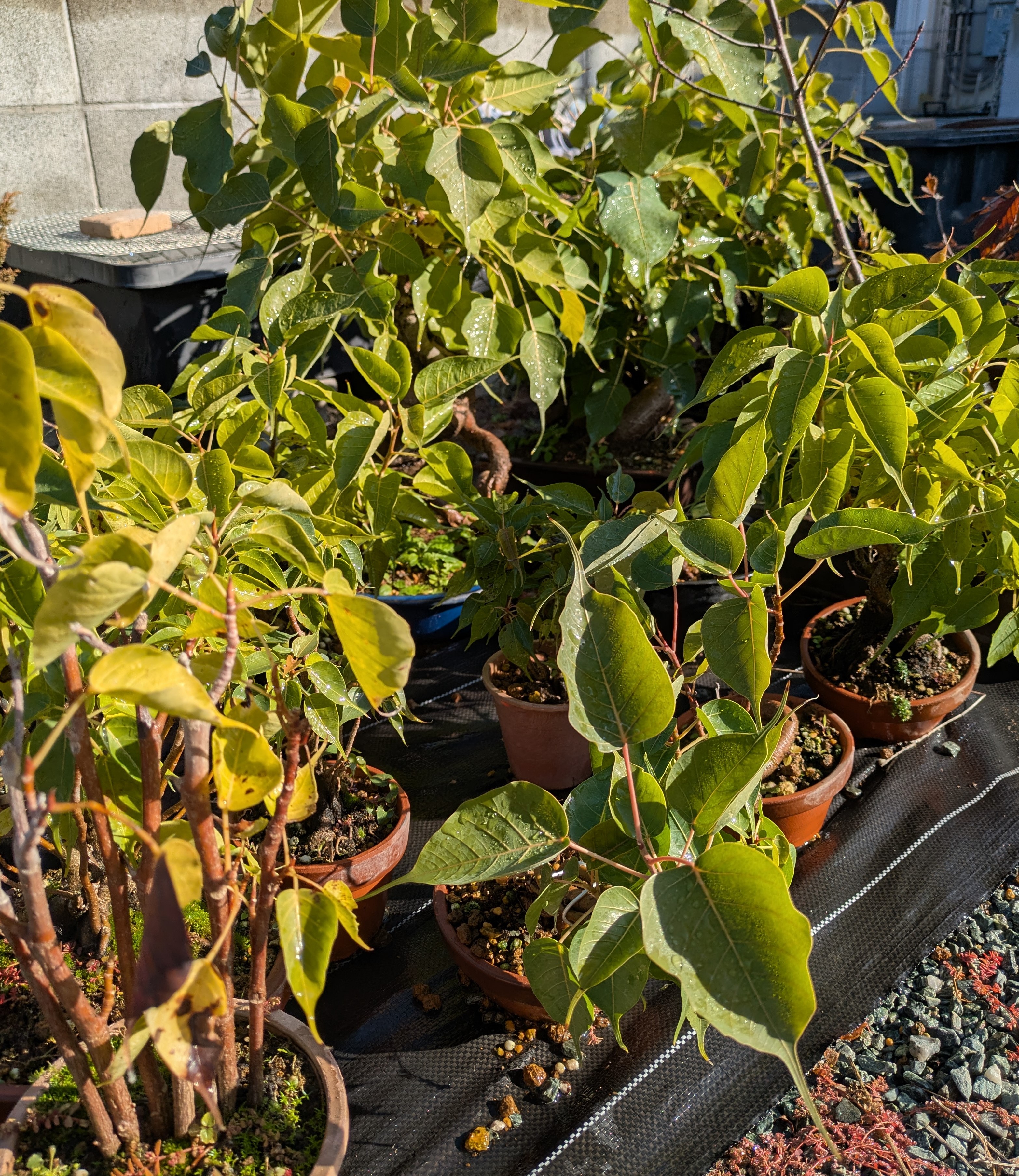 例年であればインド菩提樹を室内に保護していたのですが、今年はどのタイミングで保護するのか悩むとこです。