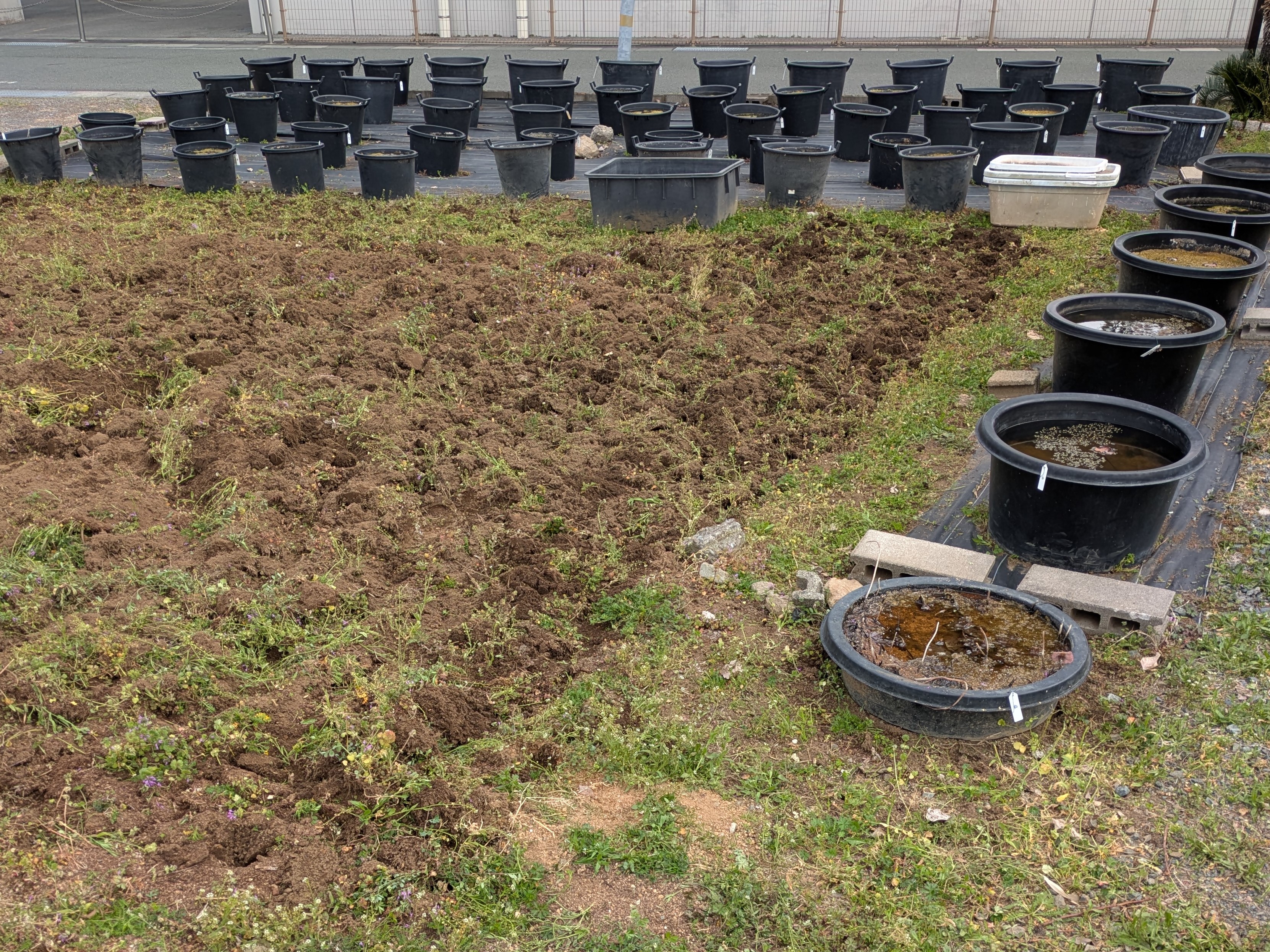 そろそろ蓮の花の植え替え準備をしようと、畑や周りの草抜きをしました。