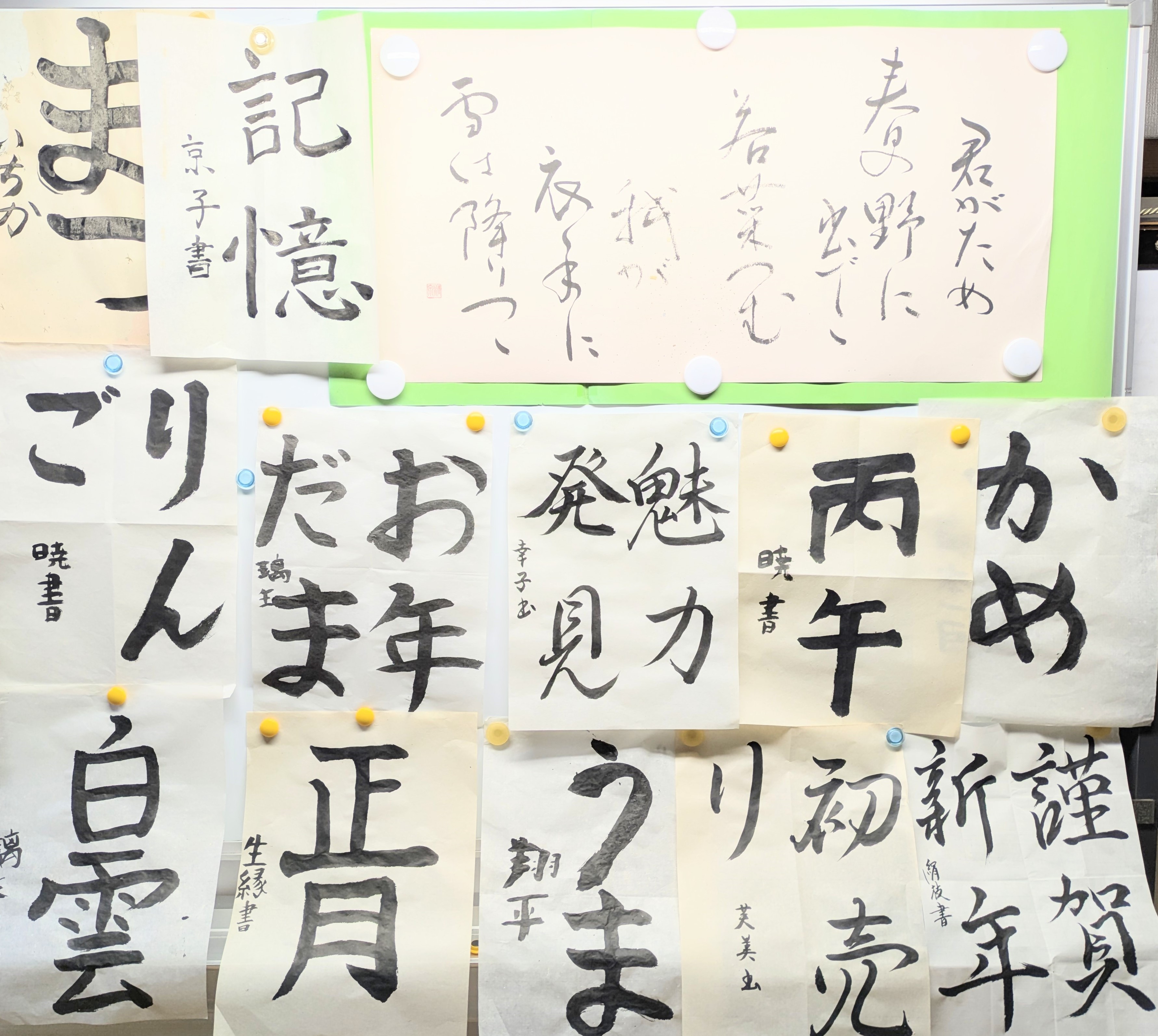 先日は今年最初の習字教室で書き初めでした。皆さんと楽しく無心にできました。先生にも今月の作品をいただき、皆さんの書き初め作品も上手です。次回は1月17日(土)13時からです。どなたさまもお待ちしております。